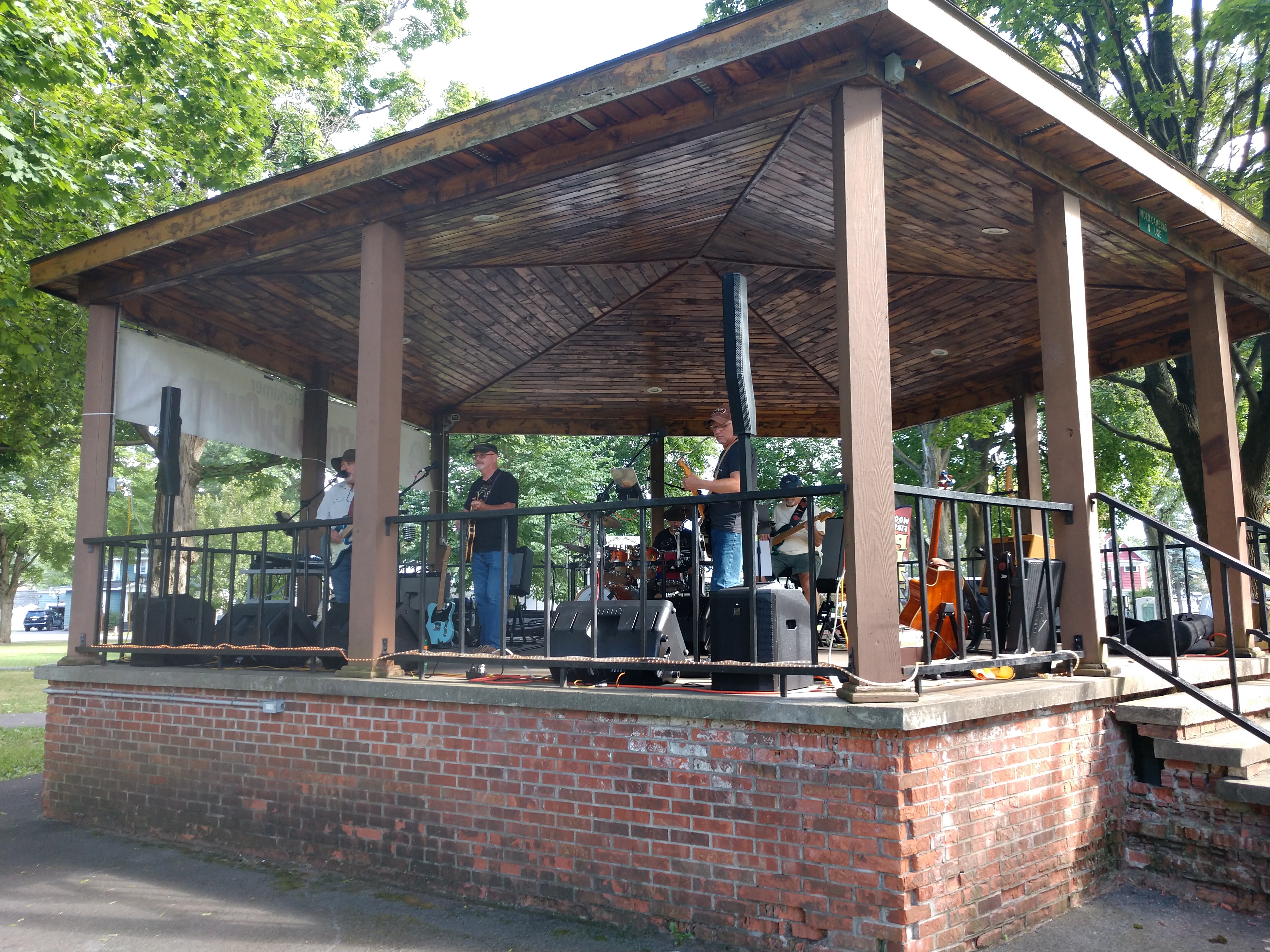 The first thing I did when the music started was to take a picture of the band and post it on Facebook, inviting folks to come one down. I sat at one of the picnic tables with a couple of other fans and settled down to enjoy. I must say, Herkimer really has it going on for its food truck night. The picnic tables are handy, and the trees provide shade which I really appreciate.