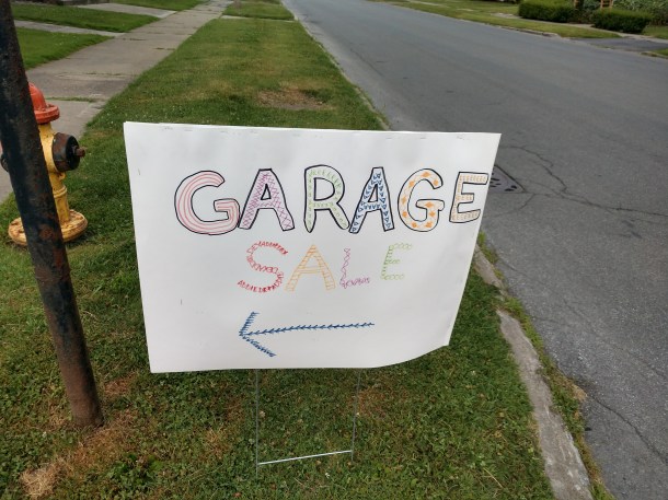 “I know, I’m making notes of where to go later!” Full disclosure: I did not go to any garage sales. I have too much stuff in my house as it is. I ought to have a garage sale myself, only I am far too unorganized.