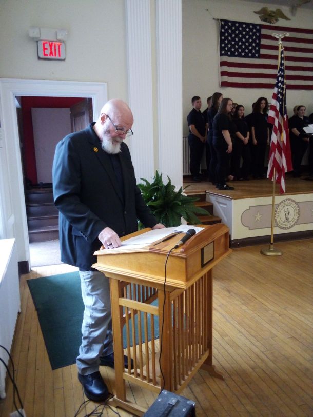 I guess it isn’t really a defense, but I have been running around like I have health, energy, and ambition (I bet you thought I was going to say, “like a chicken with its head cut off”) (you know who you are). Saturday I ran the Reindeer Run 5K on unreliable streets in Little Falls. After returning home to shower, I went to Ilion to take a picture of the Frosty Forest at their Municipal Hall, a fundraiser for Hoffman Wellness Center. I wrote a quick blurb for Sentinel Media (must also do a blog post), which I emailed out. Next I went to the cookie sale at Herkimer County Historical Society, because, well, cookies. I had a very nice visit there with a couple of my favorite volunteers.