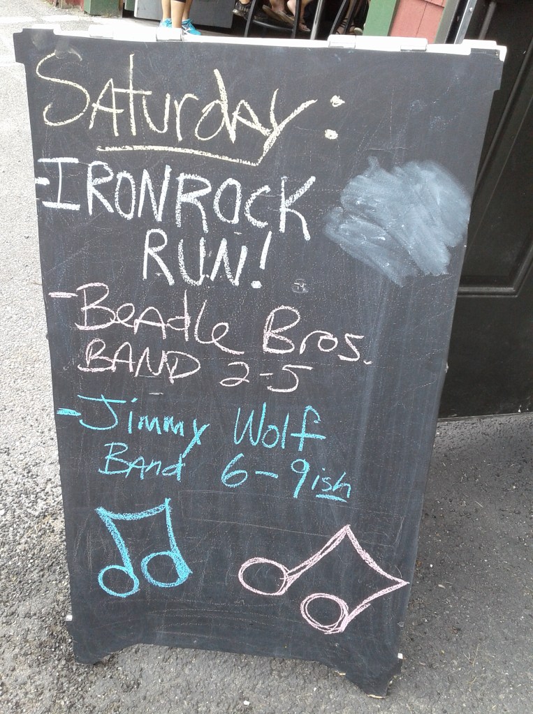 After the race we sat in Iron Rock Brewing Company and listened to a band. There was to be another band later, but we did not stay. I wanted to go home and shower.