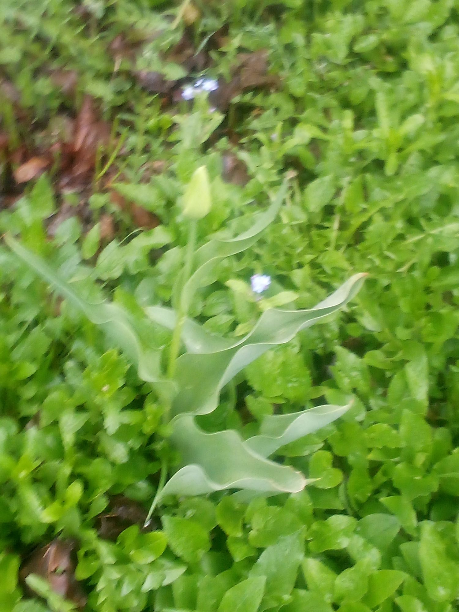 I bestirred myself to get my phone and add the picture to my Media Library. The tulip has not yet bloomed, but I took a picture of that, too.