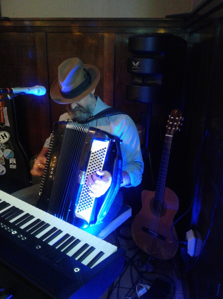 Nanni plays keyboard, guitar and accordian. Another patron was especially delighted with the accordian. He said his grandfather used to play it every night, but he had not heard it in 16 years.