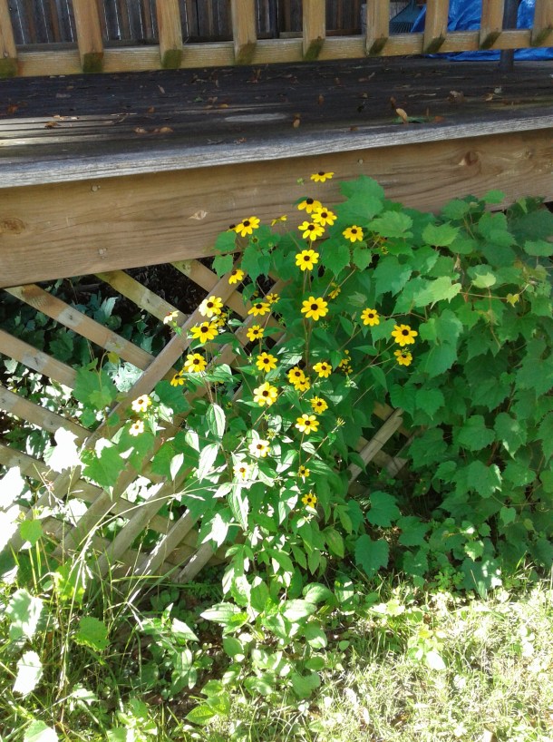When mowing my lawn with the non-power mower, I have left a lot of crap around the edges. Today I tried to clean up some of that. One thing I learned, or perhaps was reminded of, is that wild grapevines are quite invasive. The roots go on forever! And the vines cling with tenacity to everything handy. I clipped, I pulled, I hack-sawed. I added to a growing pile of crap.