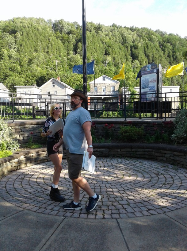 I took this picture after walking to the Society to purchase some post cards (regular readers know I like to send post cards to people). I thought it would inspire me. You see, I began writing a murder mystery for the Historical Society centering around this very hole in the ground (ooh, I just thought of a good title for this post!). Full disclosure: I began to write it last year for our fall show but felt it was too complicated a plot for my brain at the time. I wrote Lights, Camera, Murder! instead, which I think worked out pretty well. More recently I came across the notes for the other and was surprised by how much I had written on it. I said, “Heeyyyy!” or some such expression.