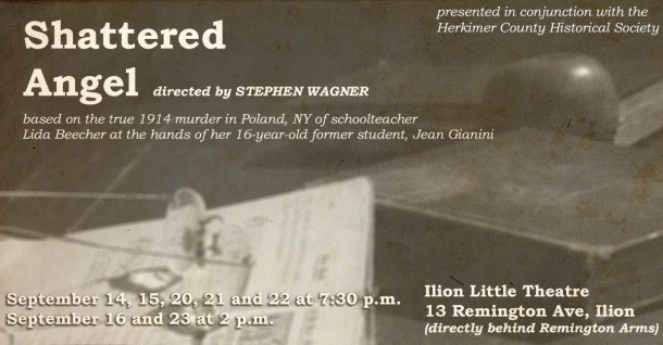 Once again, performances are Friday and Saturday, Sept. 14, 15 at 7:30 p.m.; Sunday Sept. 16 at 2 p.m.; Thursday, Friday and Saturday, Sept. 20, 21 and 22 at 7:30 p.m., and Sunday Sept. 23 at 2 p.m., at Ilion Little Theatre, 13 Remington Ave., Ilion, NY.  For tickets, contact the Historical Society at 315-866-6413.