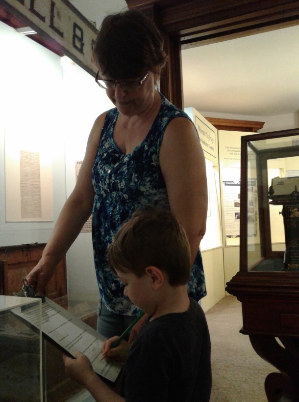 I had a great time today at one of my favorite places,  Herkimer County Historical Society.   I was there with my husband Steven,  sister Cheryl, niece Kimi, great nephew Sheppie and great niece Evie.  We were helping Sheppie solve the History Mystery.
