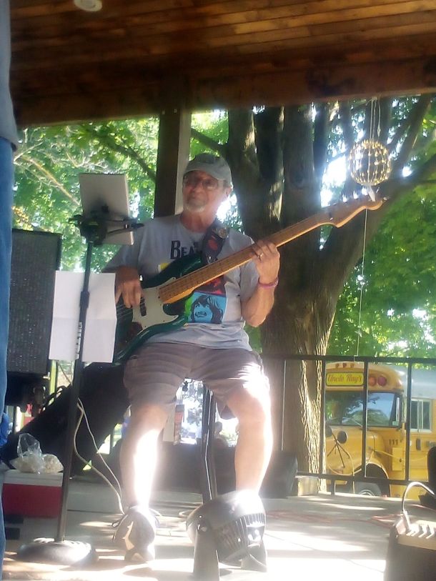 I keep saying that I will never get over my disappointment that Gridley Paige is not actually naked. That is the dirty old woman in me. I question, too, how scared they are, but I do no purport to know anybody else’s emotional state. I had never heard Justin Smithson play with them before but have heard him solo and like him quite a bit. He is, as you may know, the Rock’n Roll Mayor of Frankfort. I should see if the Sentinel wants me to start covering Frankfort Village Board meetings. I already do the Town ones.