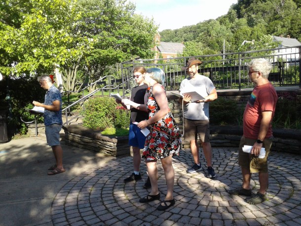 Oh no, my computer is doing the thing where I add the picture and it does not let me type anything below it. When I try to the cursor jumps back up here. Well I don’t have time to futz with it now. I’ll just leave the picture at the end of the post. It is not a current picture anyways. I did not bring my Tablet, because I forgot to charge it. I took one picture with my phone, which I immediately shared on Facebook, in case any local friends might like to hurry out and join us, but right now my phone is charging. This is all by the way. Let’s get back to the post.