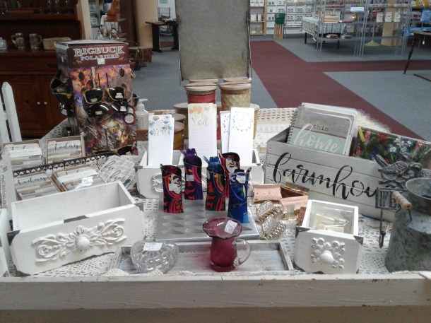 You can’t read her name tag, but it says “Roxy.” It is Roxalana Druse, who famously killed her husband and was hanged behind the 1843 Herkimer Jail in 1887. I had the honor of playing Roxy in the play of that name presented by the Herkimer County Historical Society and Ilion Little Theatre in 2015 (long-time readers may have read some of my blog posts about it). This Roxy is in Renewed and Rescued at Mohawk Valley Community Market. I stopped in briefly yesterday but must return for a longer visit (preview of coming attractions).