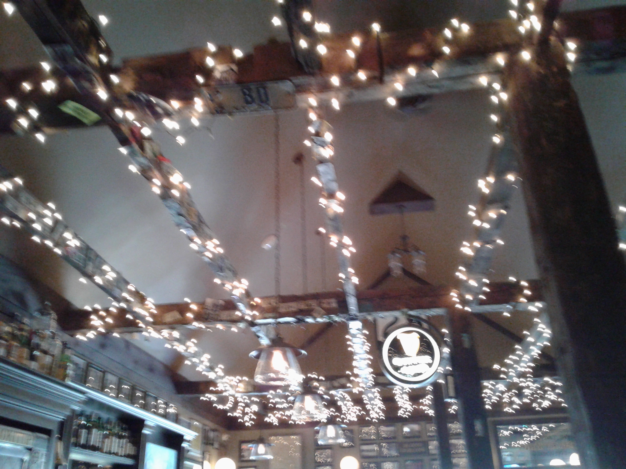 Outside the Marketplace, we noticed a sweet decoration made with a pallet. I even have some old Christmas balls like that! I wonder if I could find a space in my home for such a thing.