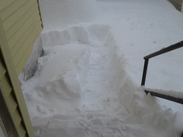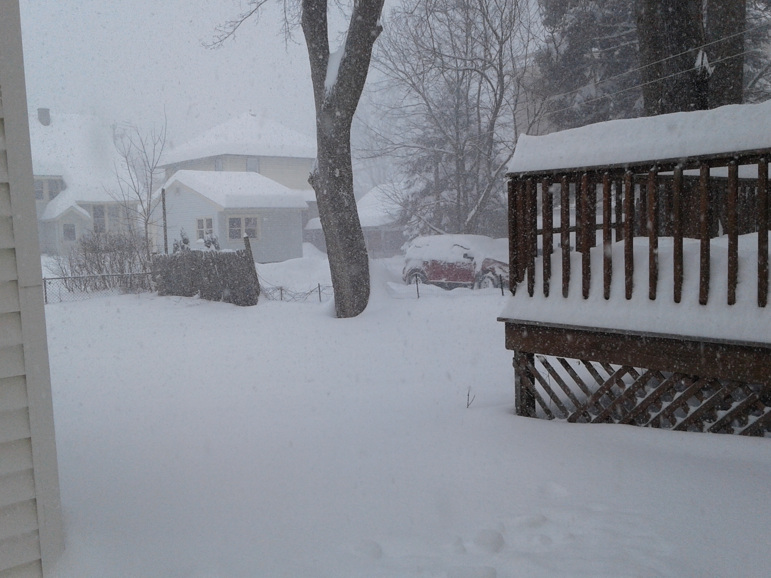 I will tell you about my Tuesday. The Mohawk Valley was hit with the nor’easter which I suppose is plaguing the entire state. I can only suppose, because I have yet restored any real television to my television set (long story, not very interesting) (although I do not rule out making a blog post out of it at some point). I arose in the morning with trepidation, prepared to dig out my driveway prior to departing for work.
