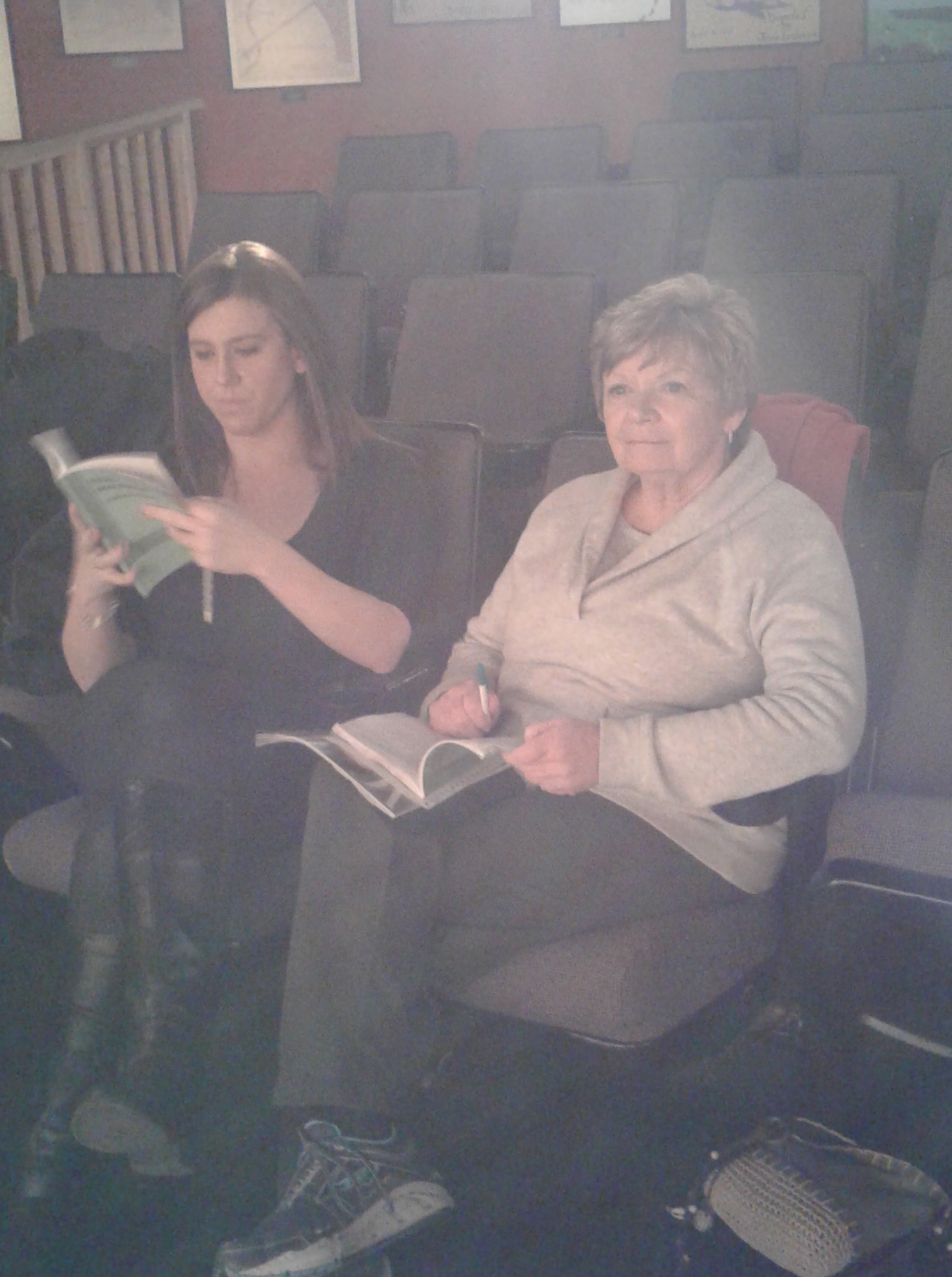 Meanwhile, in the audience, Kaylynn Iglesias, who recently joined the cast as Shelby, consulted with Cindy Shepherd. Cindy, in addition to playing Ouiser, is assisting Rick Vroman in his directing duties. I had a little problem with my tablet getting this shot. I hope it looks OK.