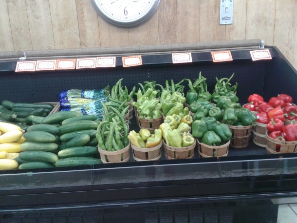 I got some Roma tomatoes, banana peppers, and pickling cucumbers. Full disclosure: I plan to eat the cucumbers un-pickled.