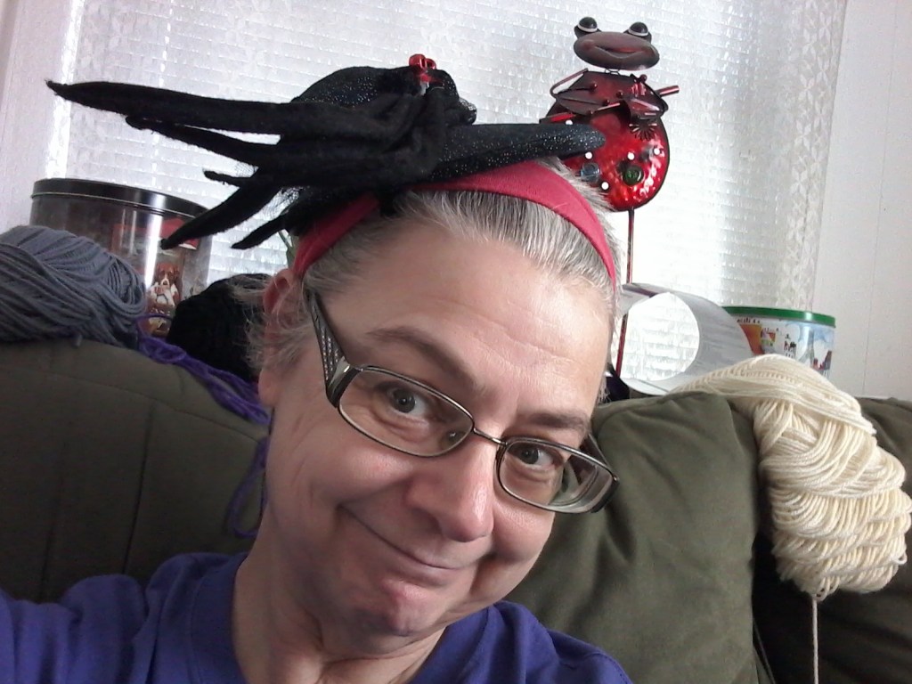 This was the first time I wore my spider fascinator, which I picked up at a garage sale to benefit H.A.L.O., the local cat rescue organization (just to give them another plug).