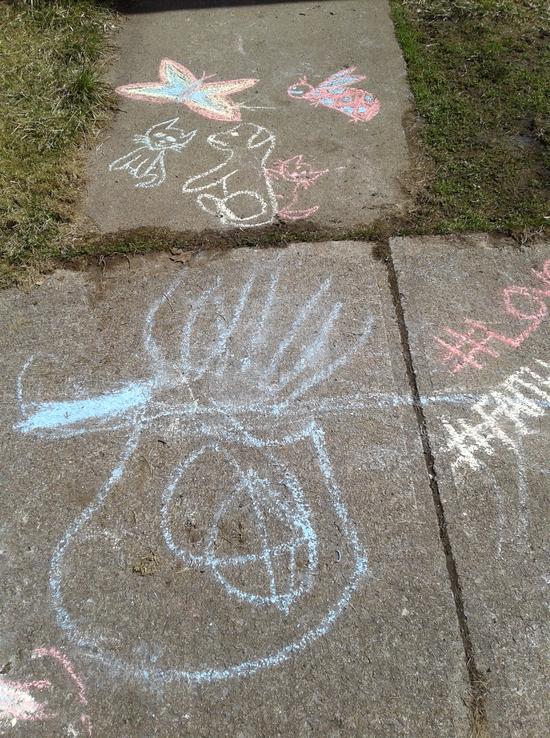 After sitting here with a blank mind for a while, I looked in my Media Library for some inspiration. I found this chalk art on a walking path near my house. I love sidewalk art. I hope I get a chance to photograph more of it.
