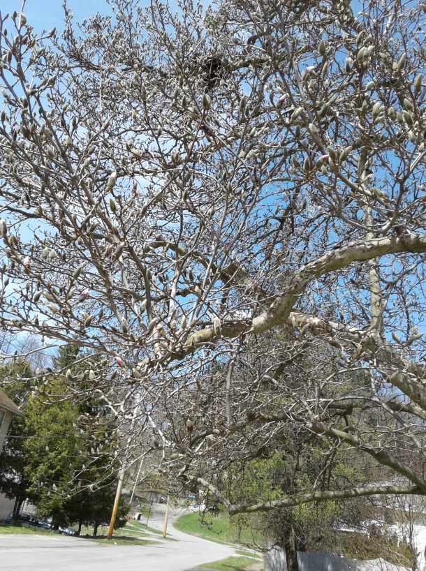 The first thing I saw was a magnolia tree with buds that looked close to blooming. I do love a magnolia tree.