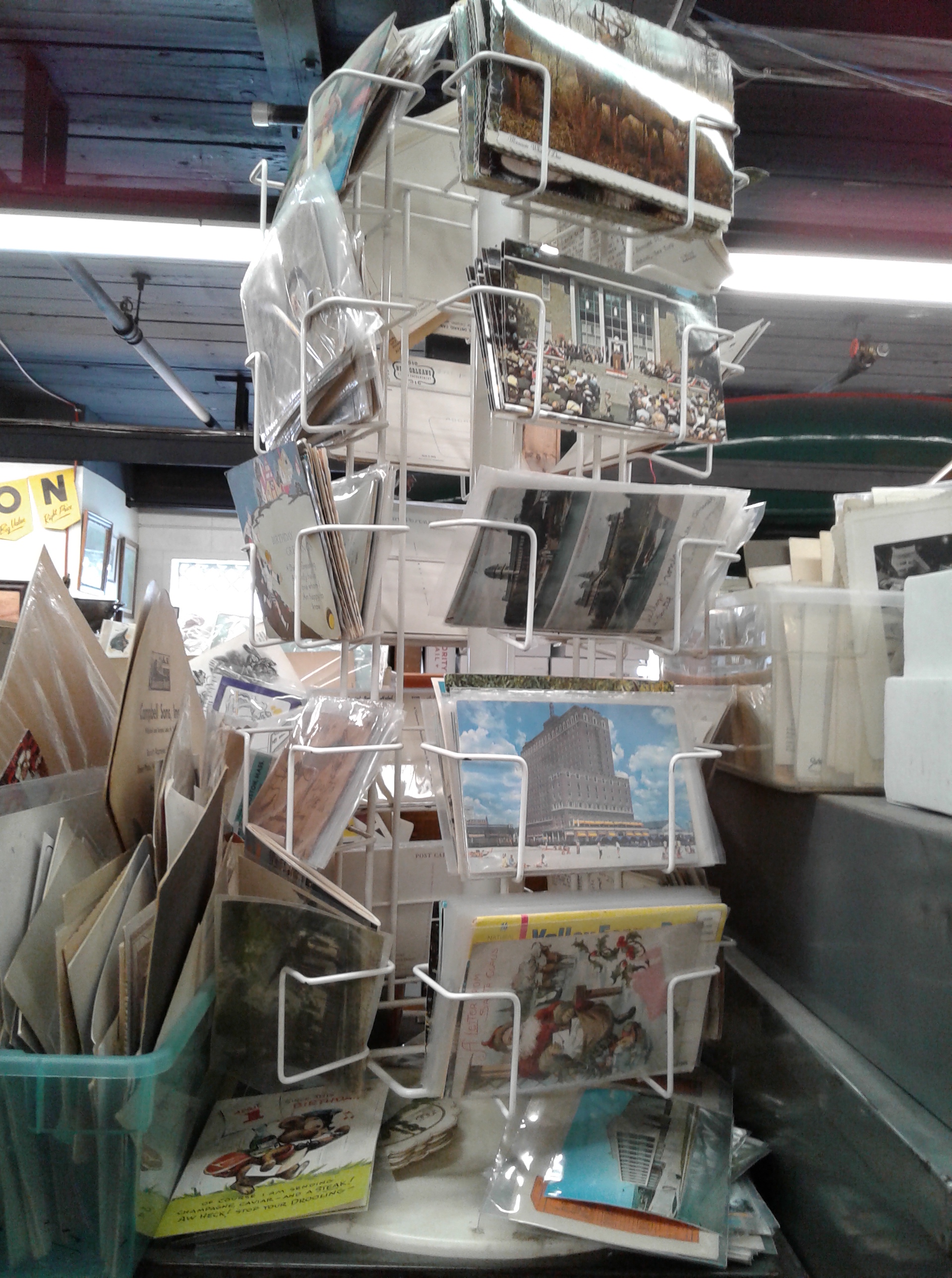 I was so glad I went! I found three packs of 40 different post cards each for a very good price. I enjoyed a nice burnt hot dog, too, while listening to a lady play old tunes on the piano. I did not spend much time walking all around, though, because I found the post cards right away.