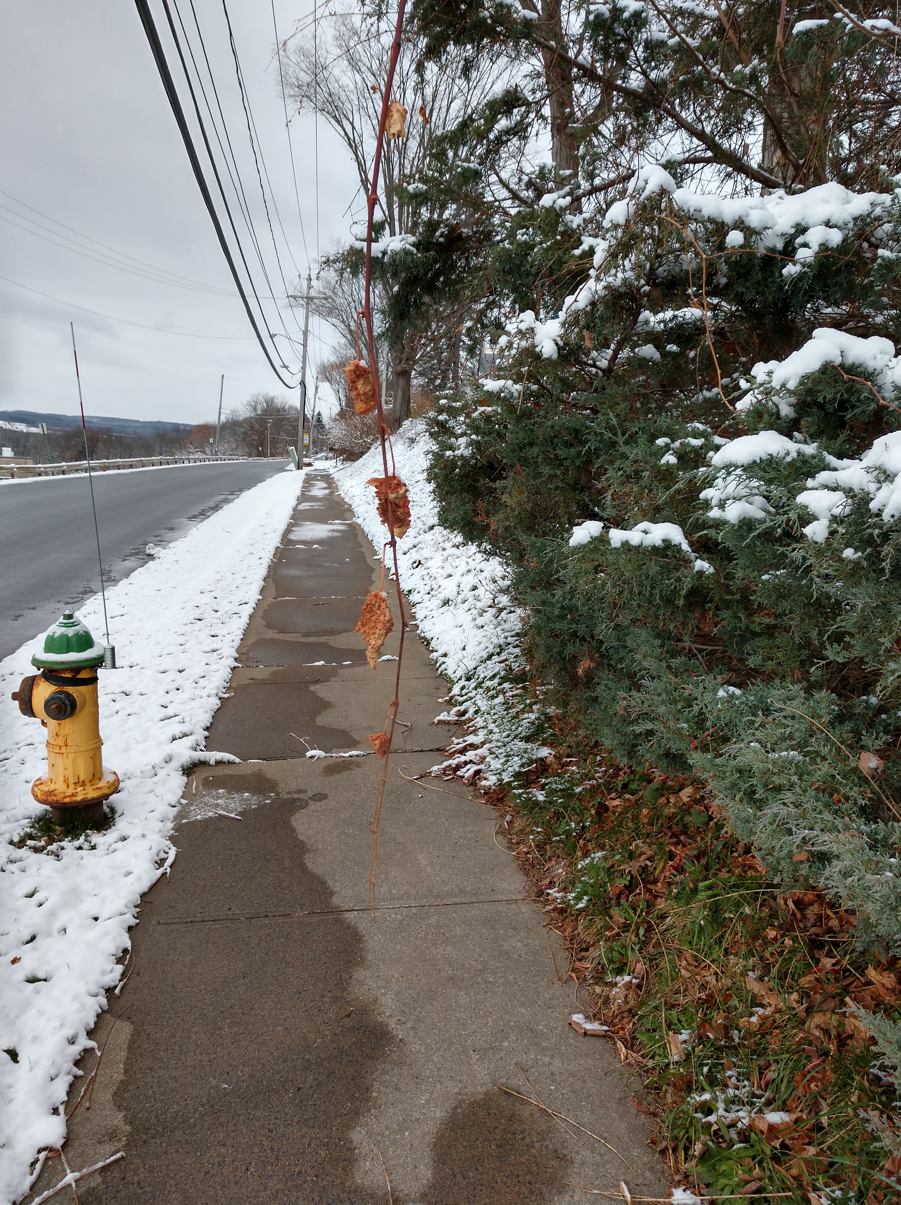 Winter returned to the Mohawk Valley, as regular readers may have noticed. I did not go for a run this morning, because I heard streets would probably be slippery. Additionally, I had a job interview. I walked to the job interview and multi-tasked to the extent of taking a few pictures for a blog post.