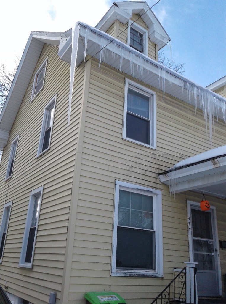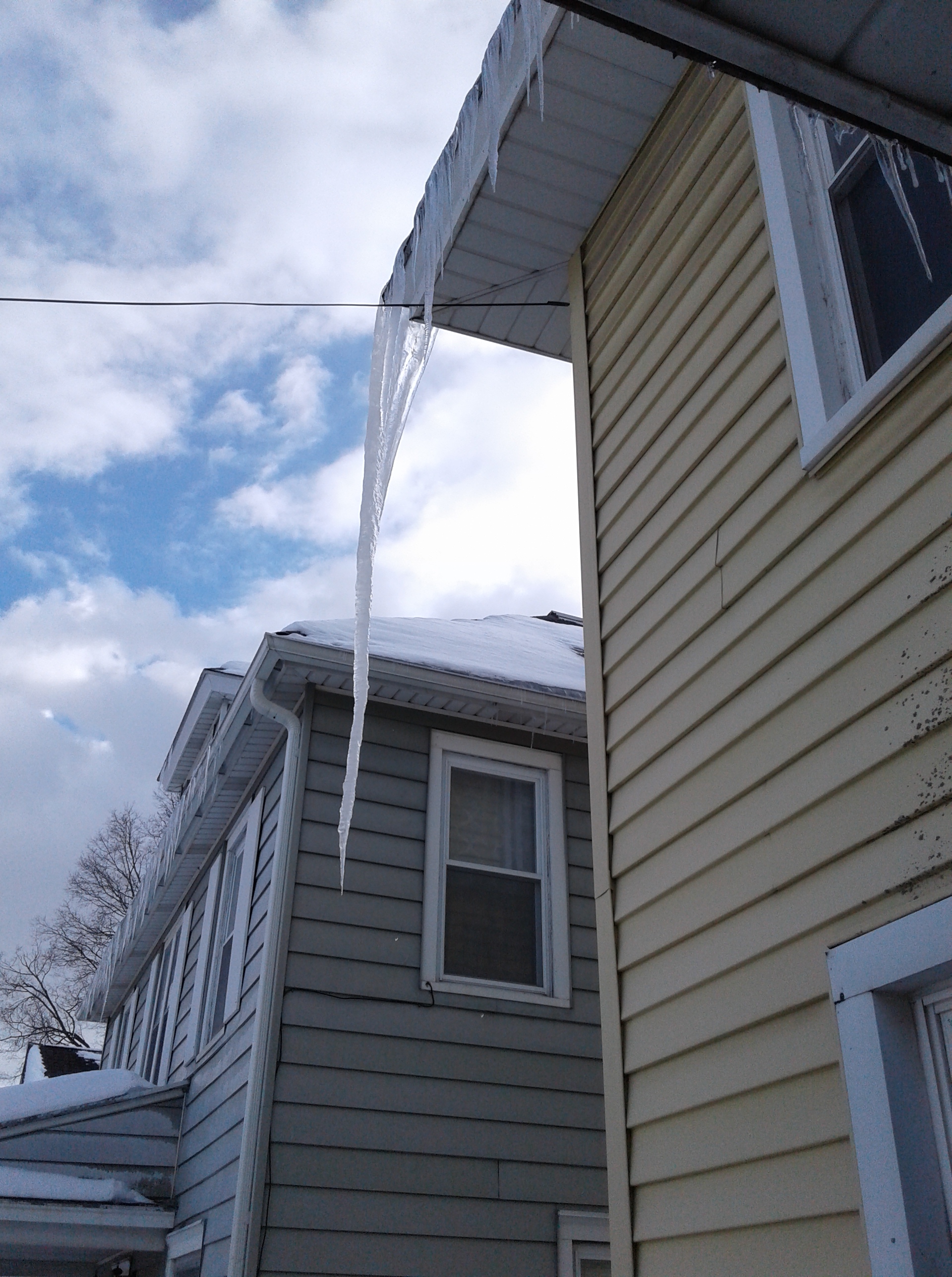All I have for my Saturday Evening Blog Post (You, know, like Saturday Evening Post, only I stuck in Blog) is a few pictures of a great big icicle hanging off my roof.