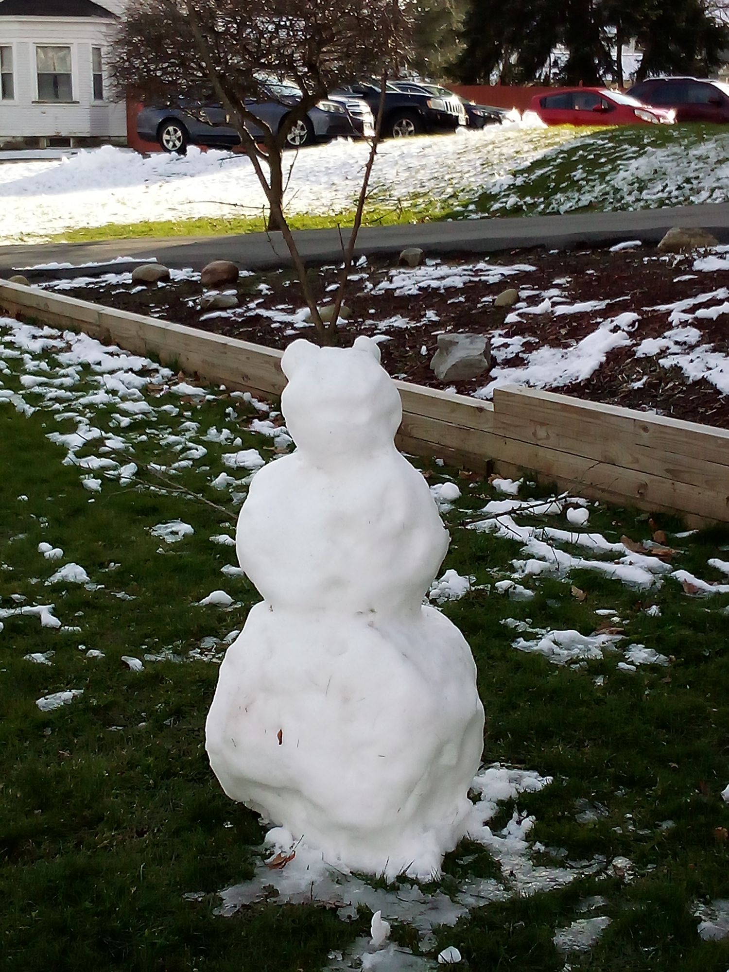 I have made several posts about Yetty’s, on Mohawk Street in Herkimer, but none recently. I was there for dinner last night and got garlic pizza. I am enjoying the leftovers today. As I left, a little boy was pointing at this lovely fellow looking over the railing. I never saw him before. Of course I stopped to take a picture.